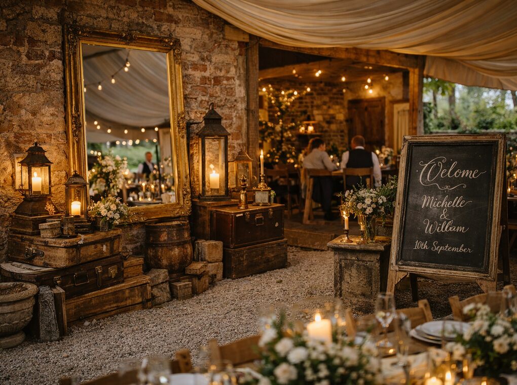 The best hire fleet pieces earn their keep event after event — and salvage does that better than anything newly manufactured. Large antique mirrors work as ceremony backdrops and entrance statements. Vintage signage adds character to reception spaces and table plans. Reclaimed timber pieces, cast iron lanterns and decorative objects give marquees and barn venues the warmth and texture that couples are actually looking for when they search for a rustic or vintage wedding aesthetic.