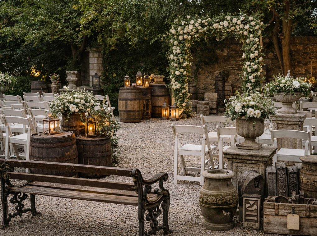 Couples know what mass-produced hire props look like — they’ve seen them at every wedding they’ve attended. The styling and hire companies winning the best briefs right now are the ones offering something genuinely different. Real barrels, actual cast iron benches, authentic stone urns — pieces with weight, history and a look that no catalogue supplier can replicate.