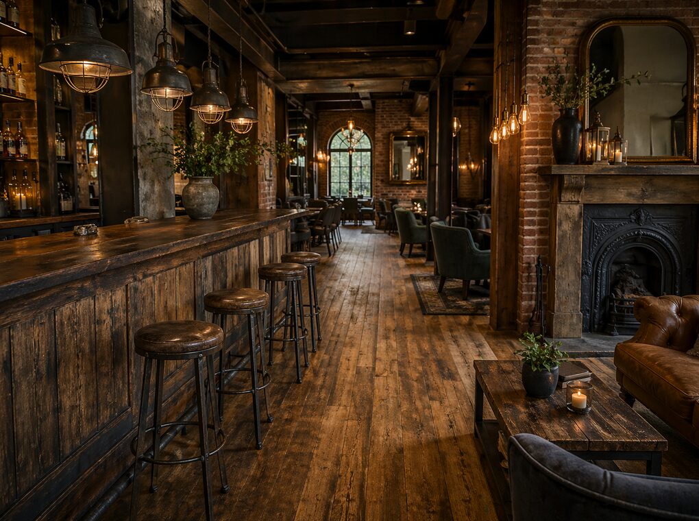 Beyond flooring, the salvage and vintage pieces that a fit-out contractor installs as feature elements are what clients remember and what end users engage with every day. A reclaimed timber bar front, a row of original industrial pendant lights, a cast iron fireplace in a hotel lounge, a large antique mirror in a restaurant — these are the pieces that make an interior feel intentional and considered rather than just well constructed.