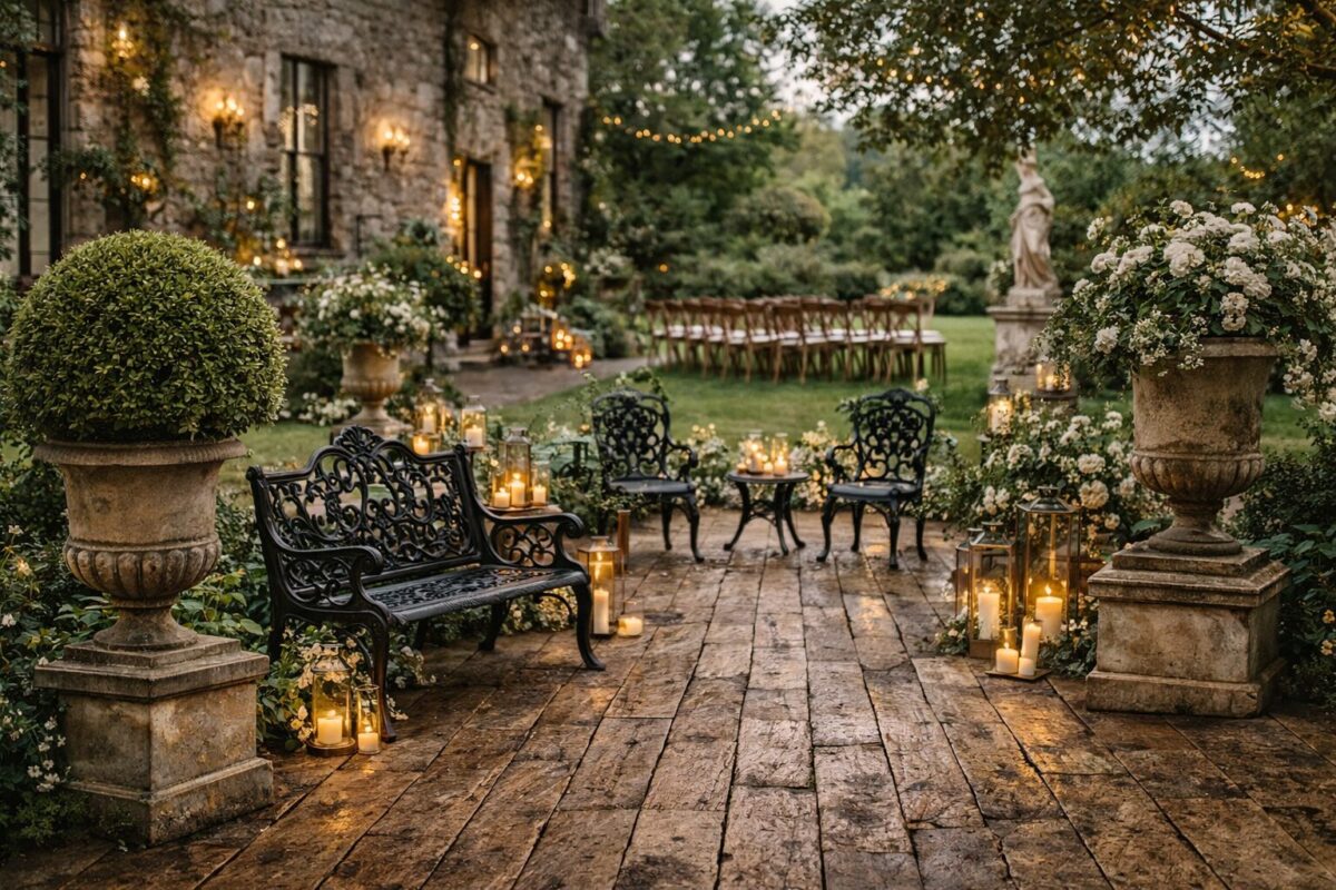 Outdoor spaces are one of the biggest selling points of any wedding venue — the terrace for drinks receptions, the garden for photographs, the courtyard for evening gatherings. Cast iron garden benches, stone urns, cast iron planters, garden furniture and stone garden ornaments give these spaces a timeless, established feel that newly landscaped grounds with modern furniture simply can’t replicate.
