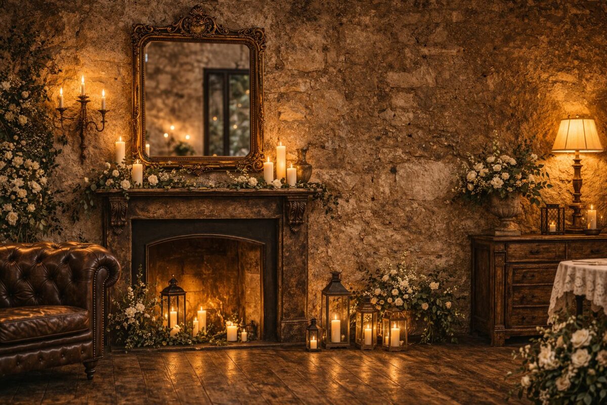 Beyond flooring and outdoor furniture, the interior styling details of a wedding venue matter enormously to couples and their photographers. Period fireplaces in reception rooms, large antique mirrors, vintage lighting, decorative urns and unusual statement pieces all contribute to the overall atmosphere that makes a venue feel genuinely special.