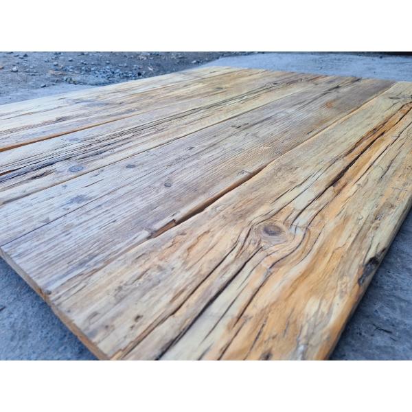 Reclaimed scaffolding, weathered by years of industrial use and prolonged sun exposure, has taken on a bleached appearance. These boards present a distinctive alternative to other reclaimed flooring options. After de-nailing, we put these boards through a process that enhances their weathered and unique appearance.