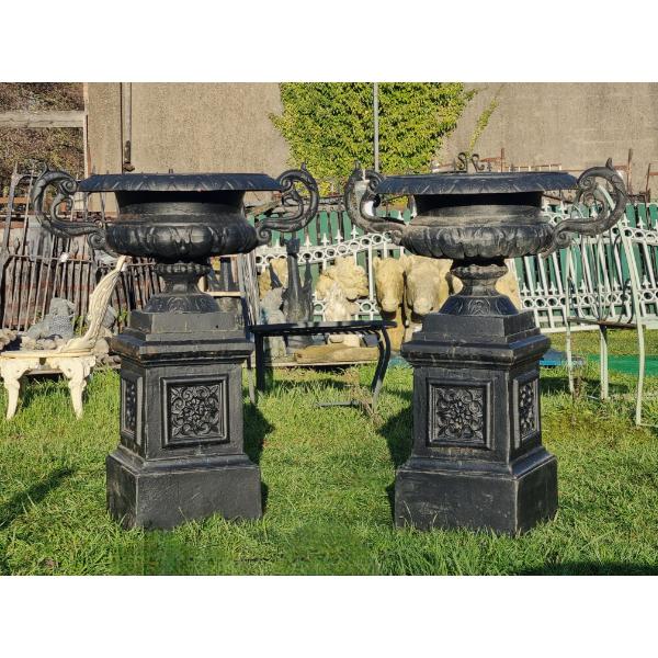 Urn Large Handles and Pedestal Black CH-R-102-B