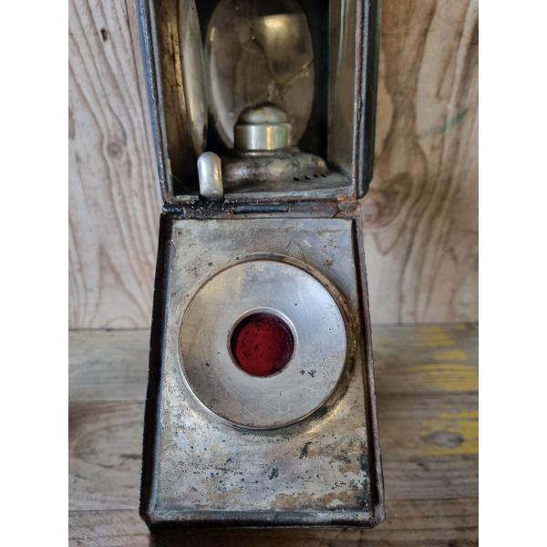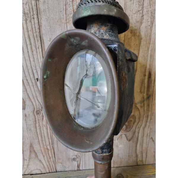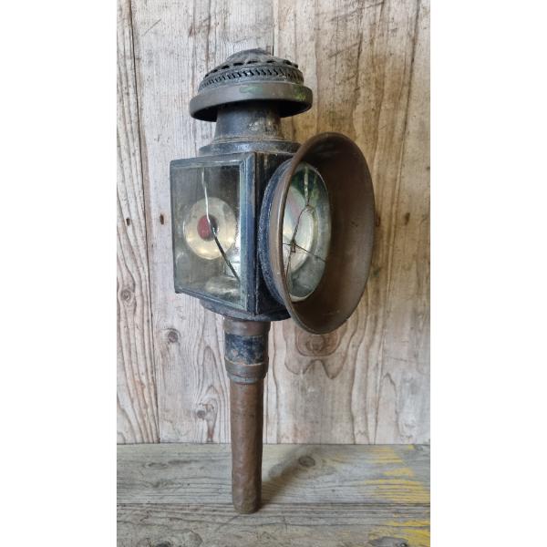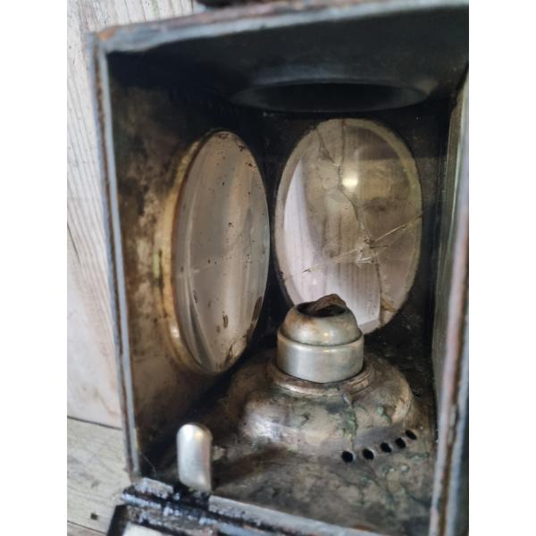 Copper handle. Surface rust and age related wear. Glass panels have cracks, see images.