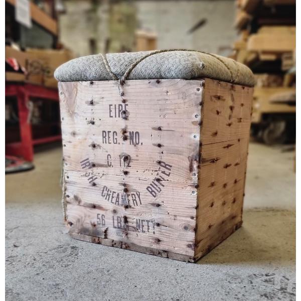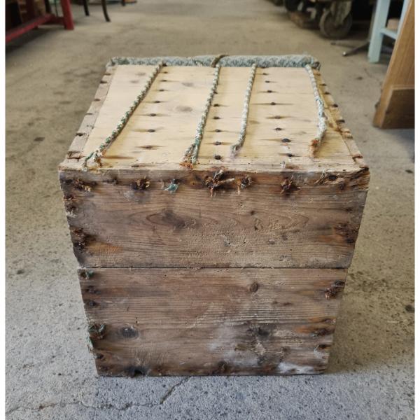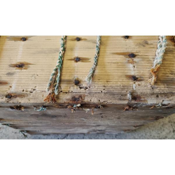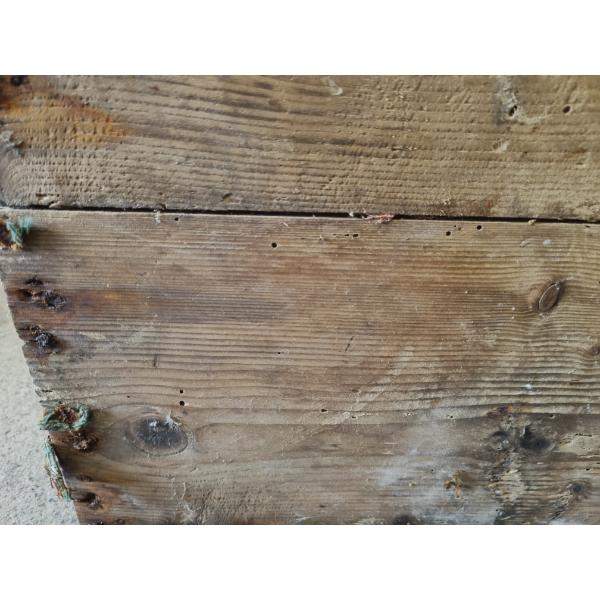 Hinged cushion top, previously lined interior, nails remain all around. Some minor woodworm damage to bottom. Has been treated